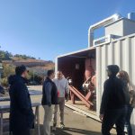 Researchers from the Unit of Environmental Science and Technology (UEST) of the National Technical University of Athens are presenting the pilot system to visitors from HEC and IASIS: Circular Bio-based Europe Joint Undertaking (Horizon Europe project).